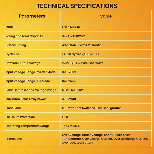 Livsol 3KVA Wall-Mountable MPPT Inverter with 25.6V 100Ah LiFePO4 Battery